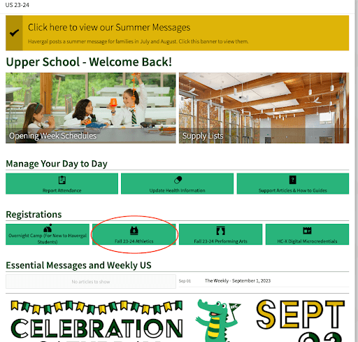 Please visit the parent portal of Veracross for the fall athletics registration link. Please see the screenshot below if you are having trouble finding the link.