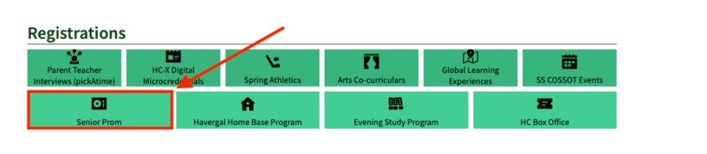 Please click this link to access the parent portal, where you will find the Prom registration link as pictured below.